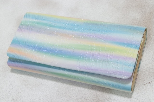 『華やかな風彩を纏うクラッチバッグ』 ::::::::::::::::::::::::::::::::::: 【用途】 パーティーに。和洋問わず最適なアイテムです。 【素材】 生地は高級感あふれる最高級シルク(正絹)に銀通し。着物用の生地のため、これ以上ない重厚感溢れる絹を使用しております。 【デザイン】 特許庁にも登録された手描きの風彩染「霞」が魅力的な、クラッチバッグ。着物業界随一の多色遣いの独特の色合いは、どんなカラースタイルも引き立てます。 【特徴】 純国産のメイド・イン・ジャパンで仕立てられたこのクラッチバッグは、同じ色目が存在しないため、世界に一つだけの特別なアイテムです。持つことで、周囲の視線を引き付ける存在感を持っています。 【テーマ】 刷毛により、染めを施します。1200年前、国風文化と呼ばれる時代に、「朝ぼらけ」や「ようよう明けゆく」のような曖昧なものを尊ぶ日本人の文化が出来ていきました。 その根幹たる「ぼかし染め」の中でも「白色」を染める唯一のぼかし、「風彩染」®。 そして「良い風が吹きますように。」という想いを込めて、このバッグ1個の為だけに色合わせされた染料で、一筆ずつ染めています。 これは、どんなブランドバッグにも無い、稀有な作り方、まさに、「同じ風は2度吹かない」よう、製作されています。 【ご注意】 一点物のため、再販はありません。お早めのご購入をお勧めいたします。 専用の包装でお届けいたしますので、大切な方への贈り物にも最適です。心に残る瞬間を、このクラッチバッグと共にお楽しみください。