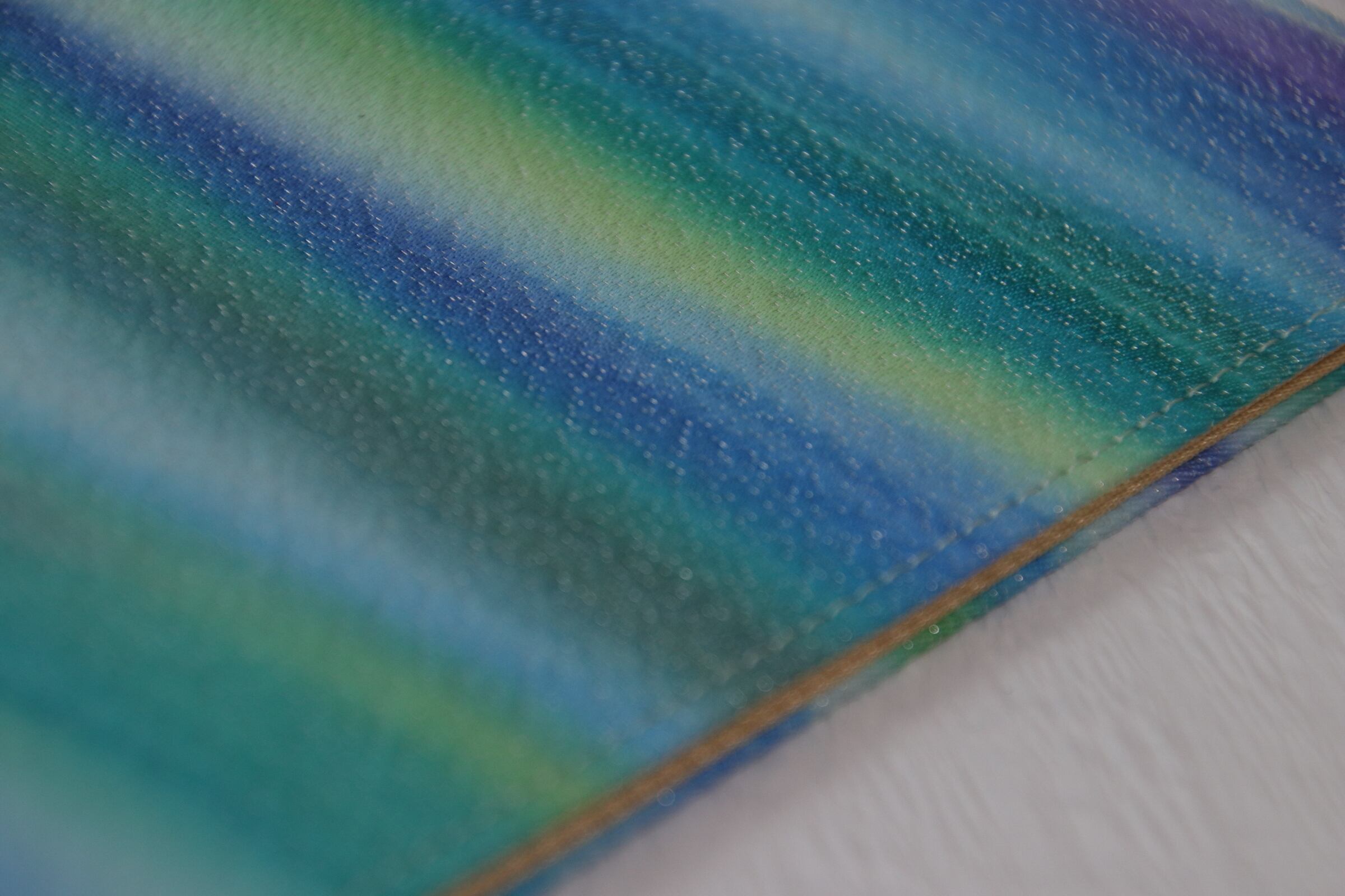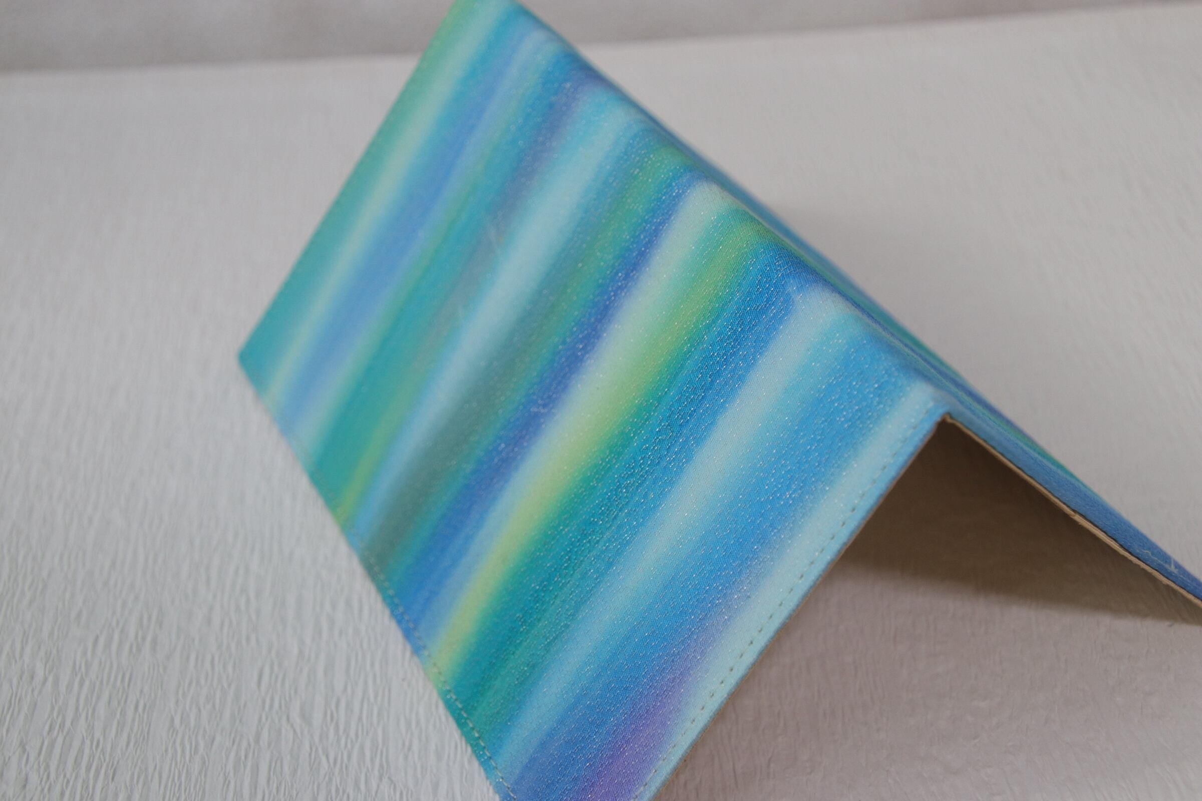 青に色濃く染まったせせらぎの輝きを写した風を染め込みました。