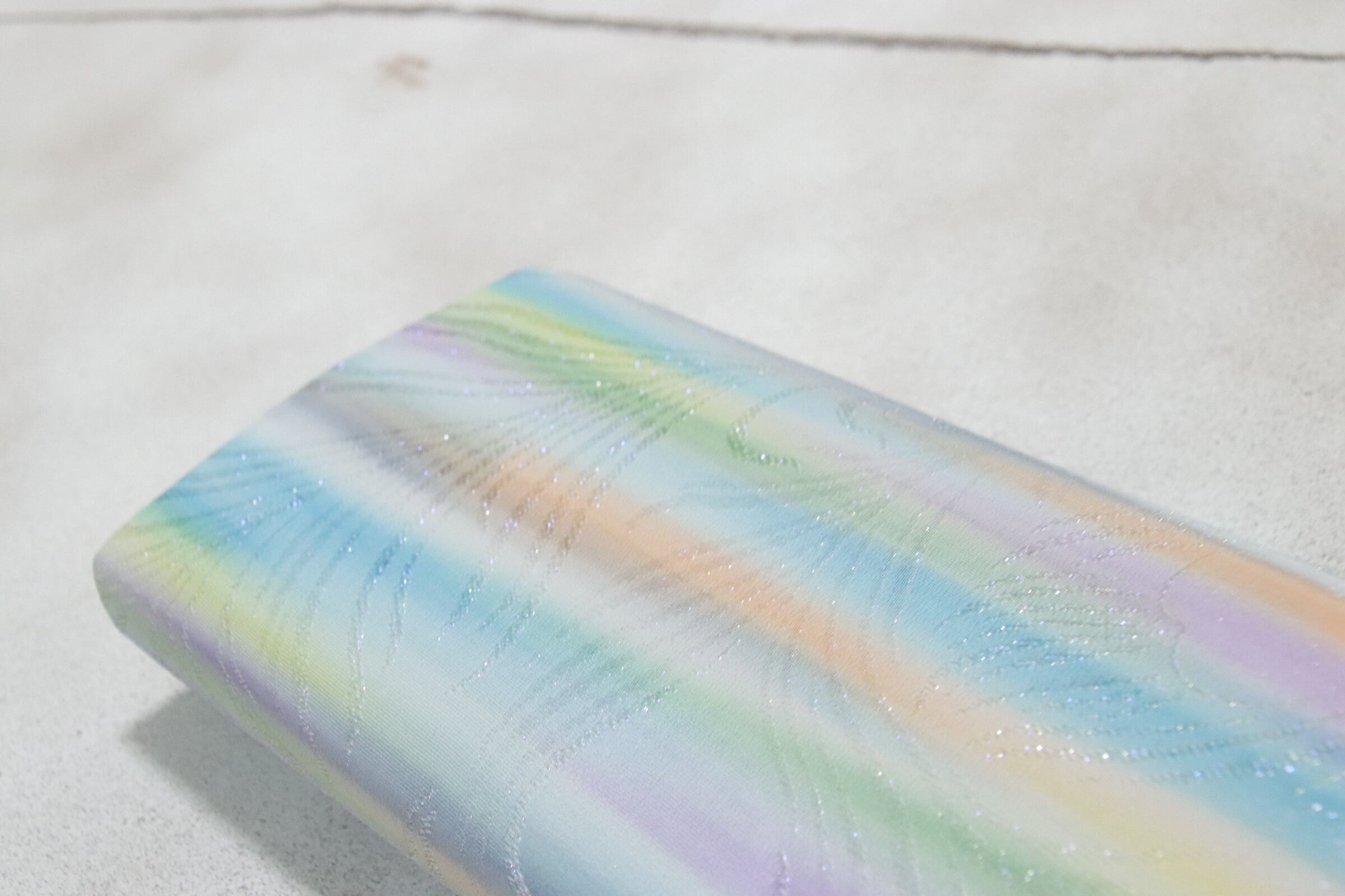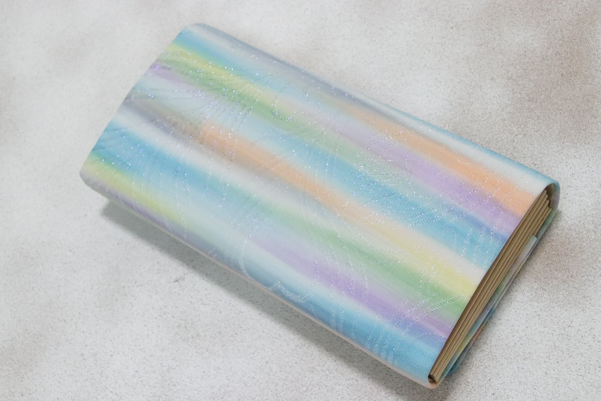 特許庁にも登録された手描きの風彩染「霞」が魅力的な、クラッチバッグ。着物業界随一の多色遣いの独特の色合いは、どんなカラースタイルも引き立てます。
