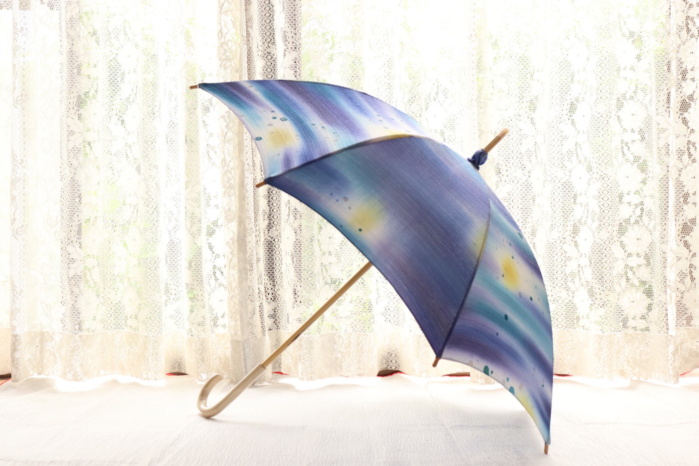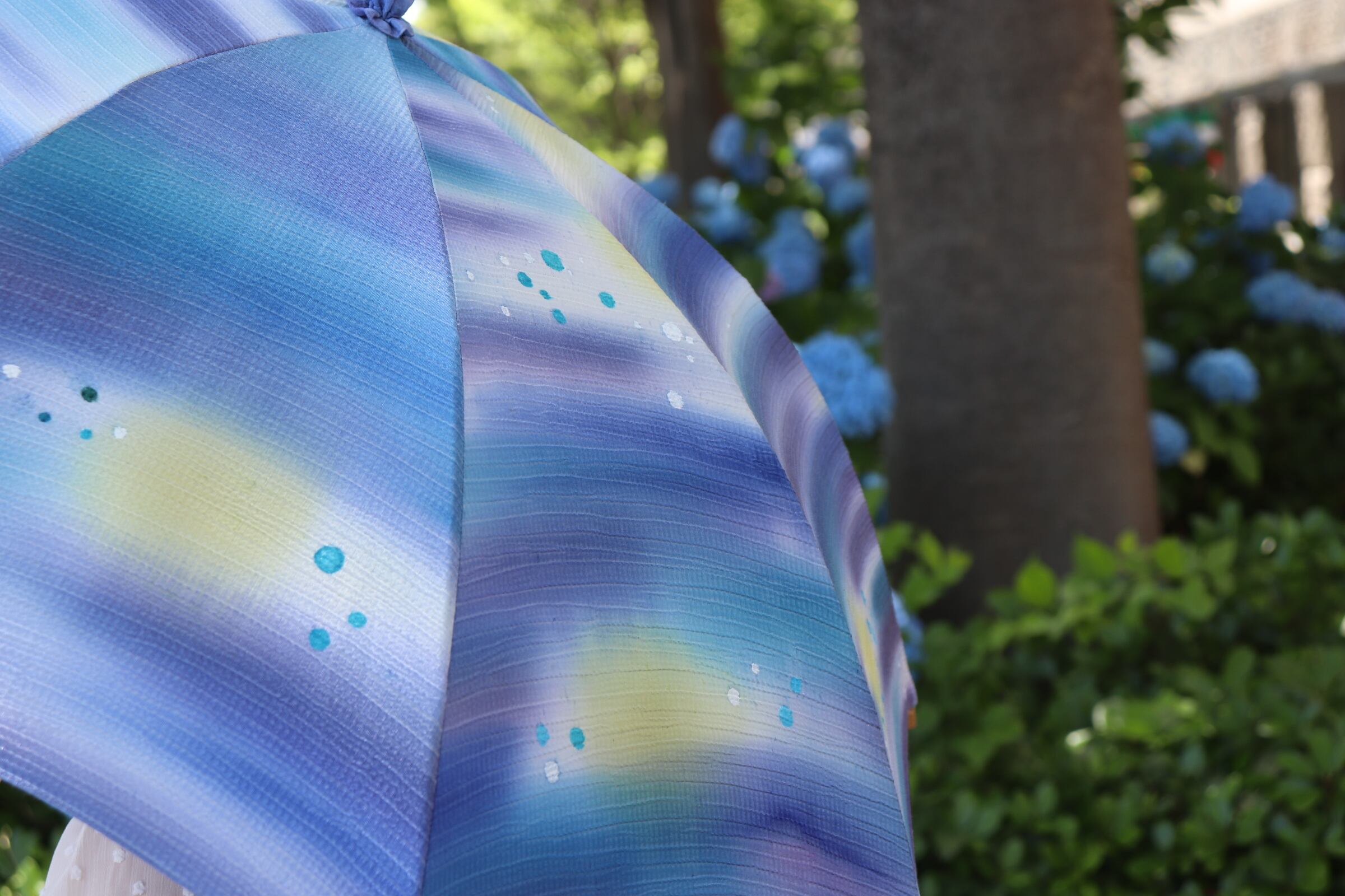 たくさんの方にお喜び頂いているこの日傘ですが、全て手作業で、染めも一人で染めておりますので、あまりたくさんは制作できませんが、心を込めておつくり致します。よろしくお願い致します。
