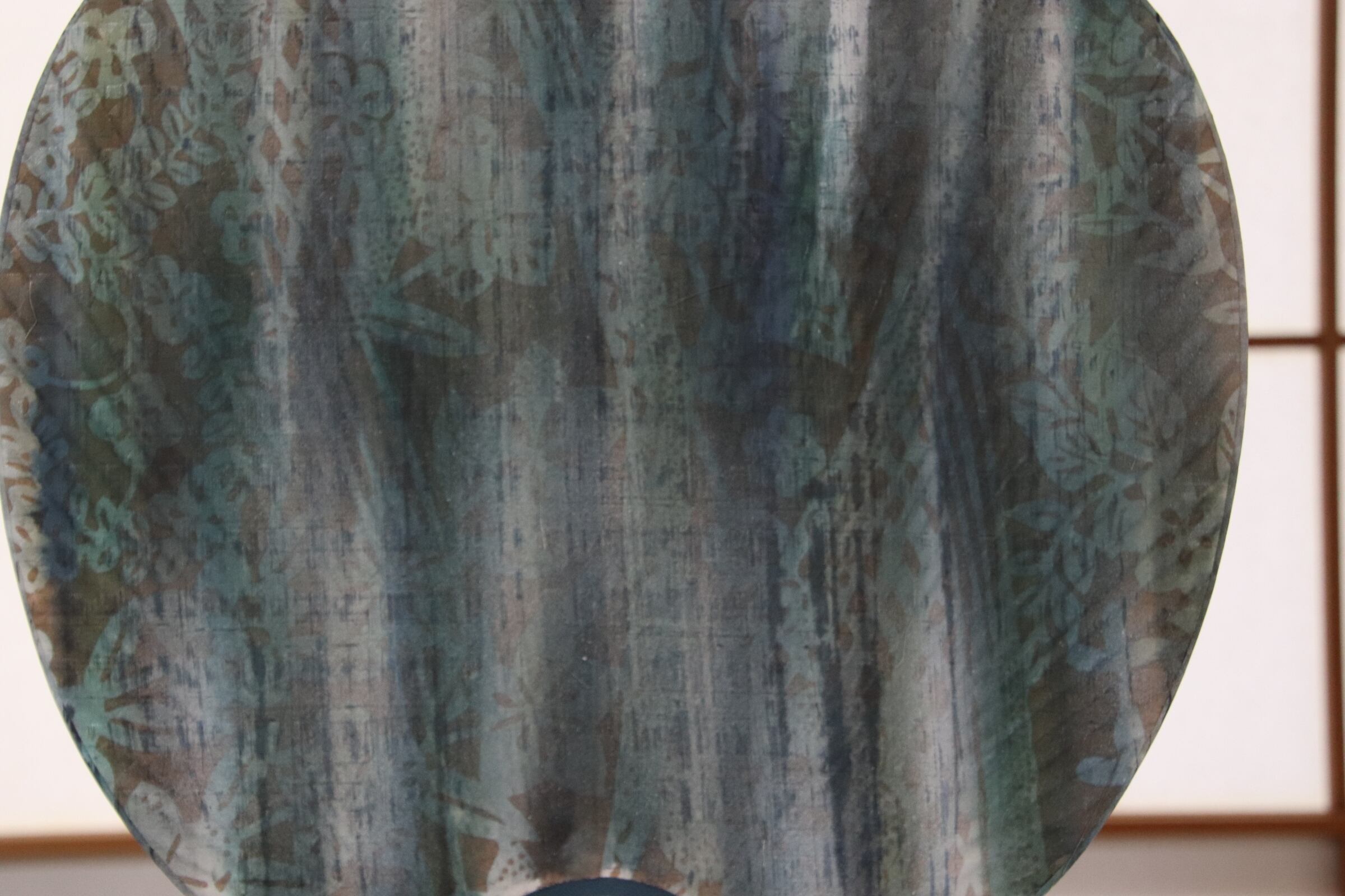 日本画の上絵を載せたり、木版や印刷、染めなどで色を載せたり、あるいは友禅の型紙や伊勢型紙の技法で透かしで草花や風景を表現します。