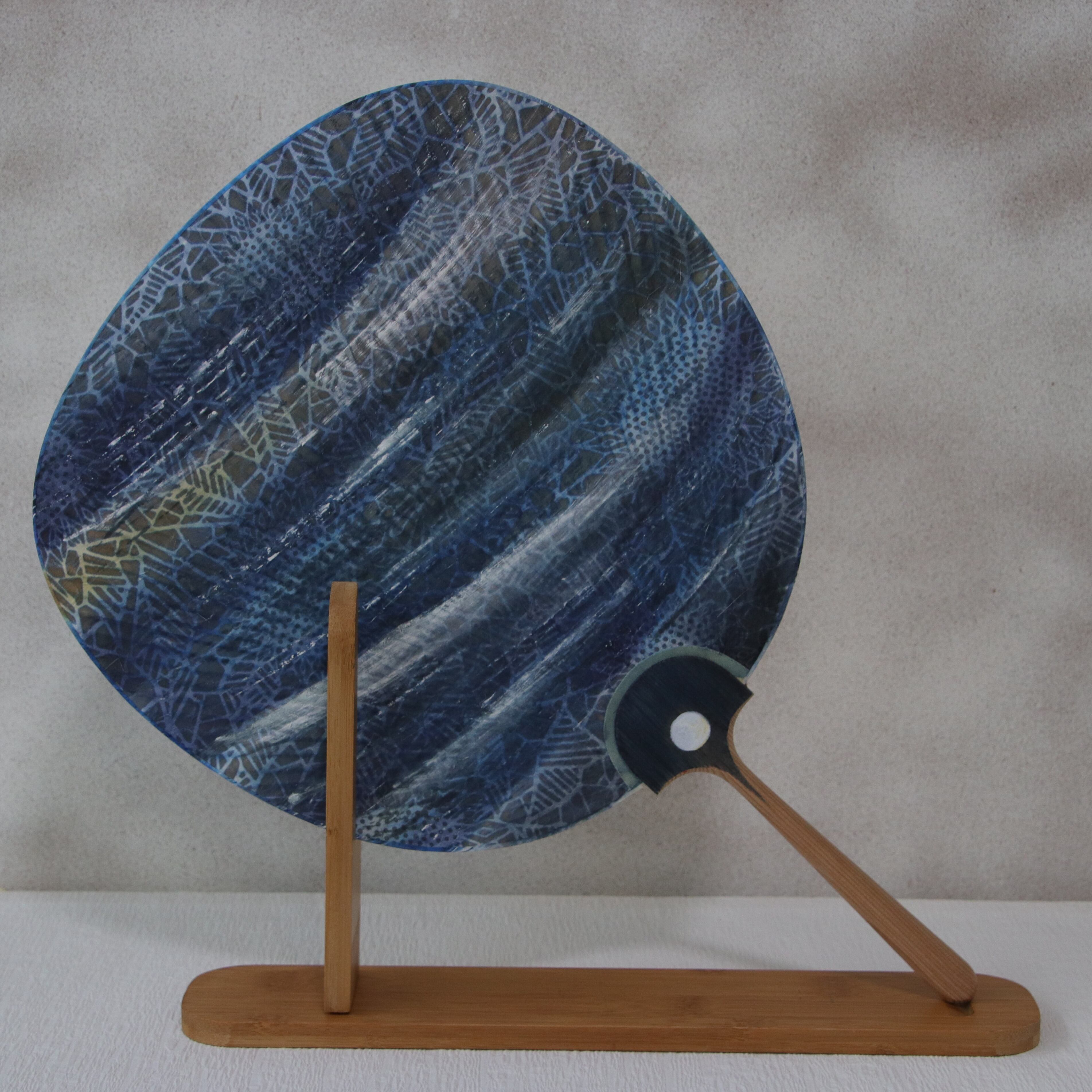 日本画の上絵を載せたり、木版や印刷、染めなどで色を載せたり、あるいは友禅の型紙や伊勢型紙の技法で透かしで草花や風景を表現します。