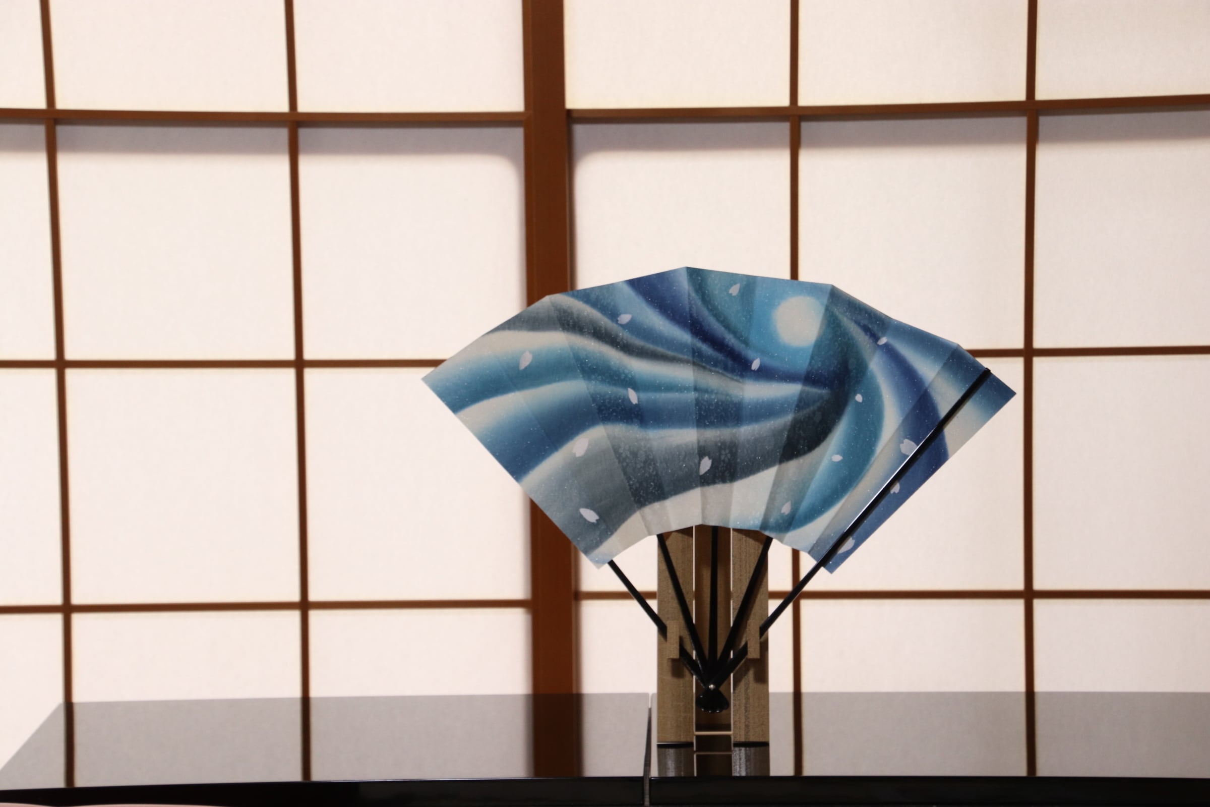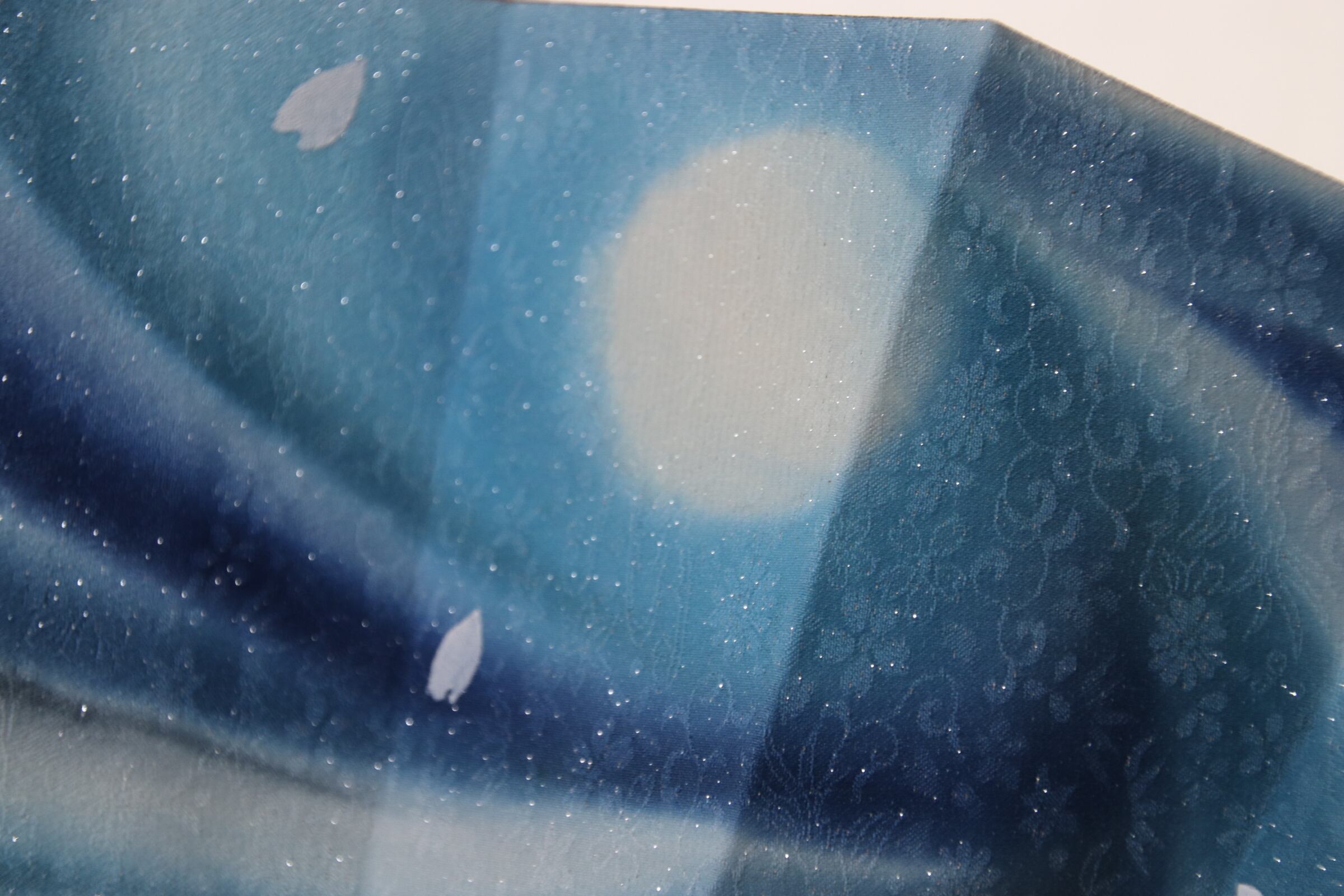 京都にて、150年の歴史の着物工房、一真工房にて、独特のぼかし染め「風彩染」を施しました。最高級正絹に染めた生地を、400年の歴史を持つ京都の扇子職人に誂えて頂き、完成しました。何もかもが最高級のお品です。色柄のお好みが合えば、安心してご購入下さい。