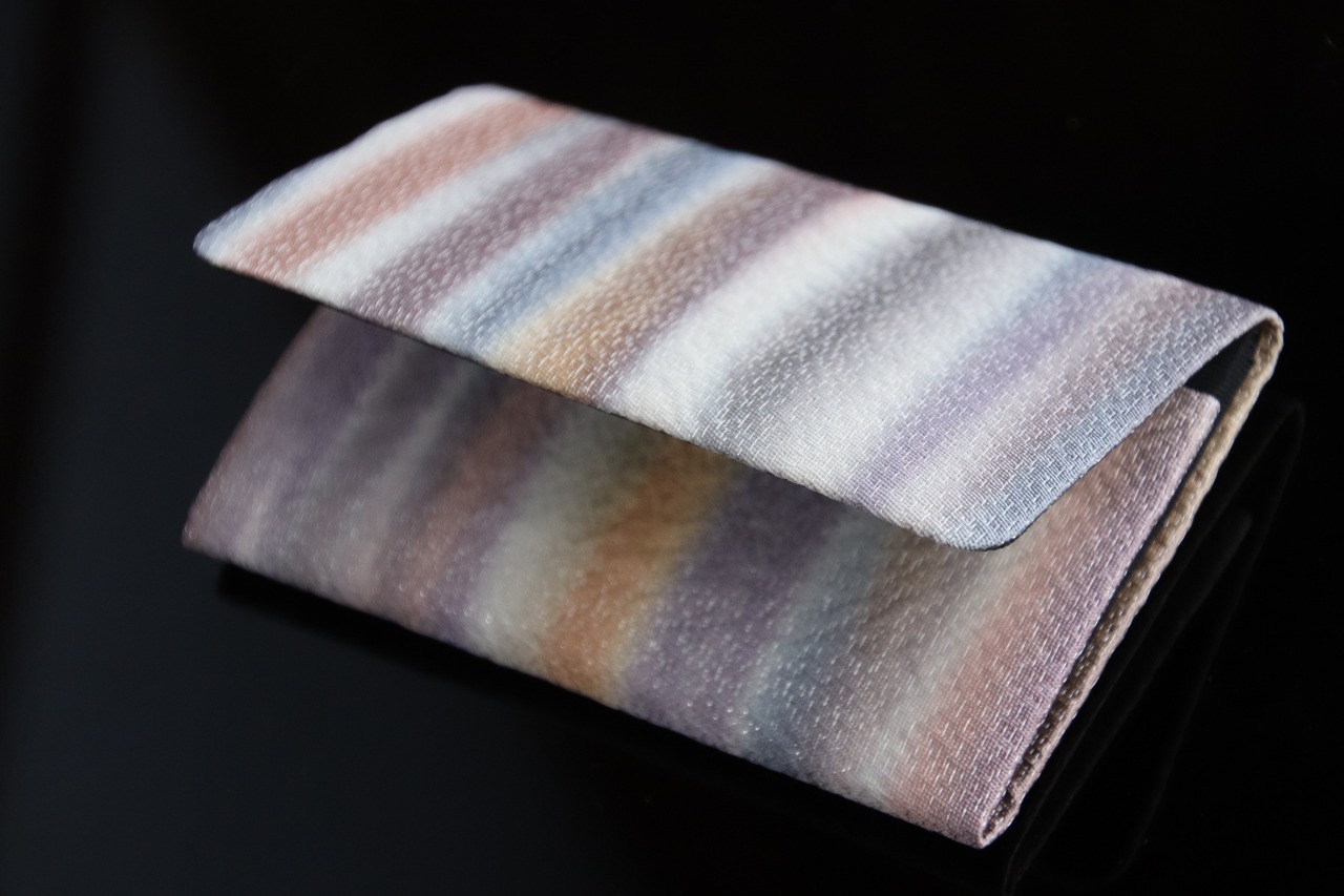 150年以上続く着物工房の染める、他に出来ない技法、「風彩染」というボカシ技法を用いた手描きの名刺入れになります。