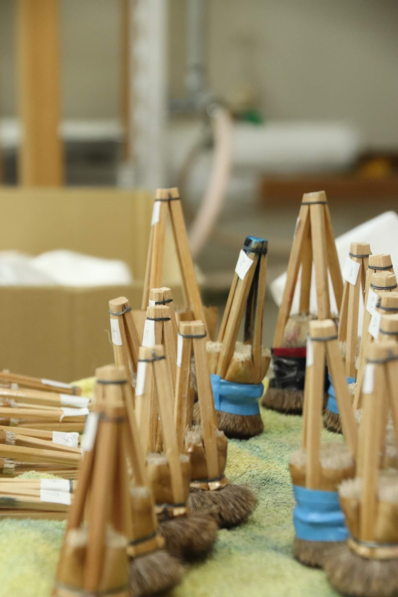 1200年のぼかし染めの中で、現代で唯一商標を持つ風彩染という着物技法を用いて、着物作家が、着物にも洋服にも使える扇子を染めました。