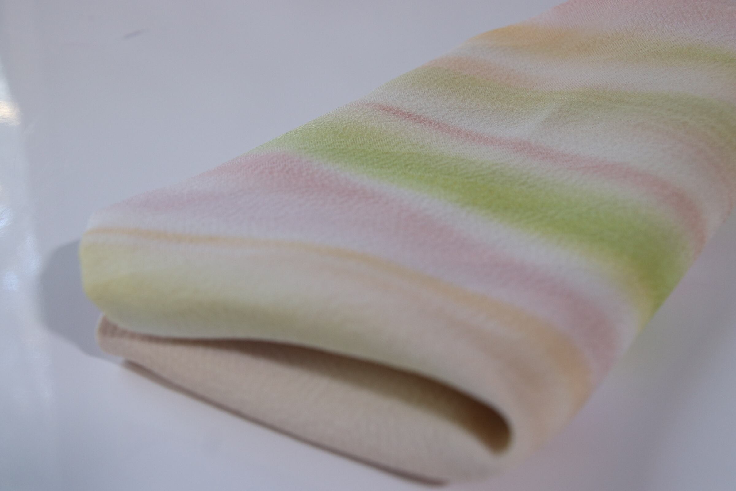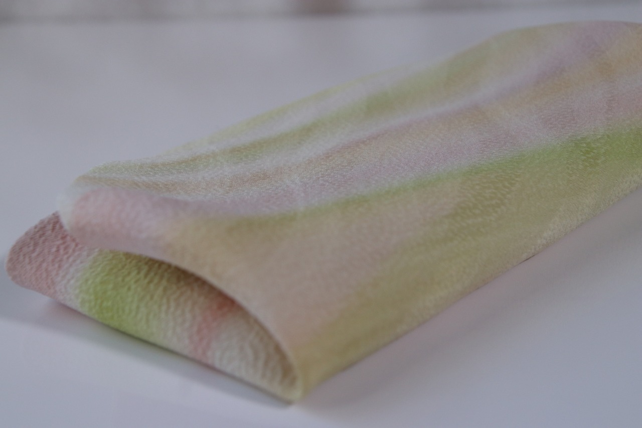 染め方は、「風彩染」という独自の手描き技法です。1200年あるぼかし染めの歴史で、唯一無二の、商標を持つ染め技法になります。
