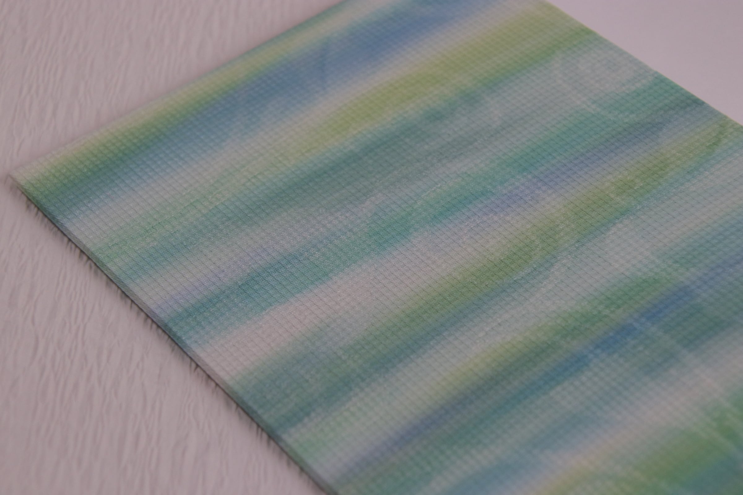 昇る朝焼けのイメージと思って染めましたが、夕焼けに見えても良いものだと思います。